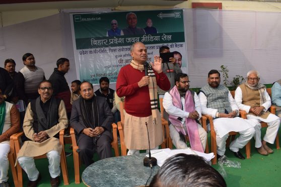 पटना स्थित जदयू मुख्यालय में मंगलवार, 24 दिसंबर को जदयू मीडिया सेल प्रदेश कार्यसमिति, जिला संयोजकों एवं विधानसभा प्रभारियों की संयुक्त बैठक हुई जिसके उद्घाटनकर्ता एवं मुख्य अतिथि जदयू के राष्ट्रीय महासचिव (संगठन) एवं राज्यसभा में दल के नेता आरसीपी सिंह थे। जदयू मीडिया सेल के प्रदेश अध्यक्ष डॉ. अमरदीप की अध्यक्षता में आयोजित इस बैठक में विधानपार्षद संजय कुमार सिंह उर्फ गांधीजी, विधानपार्षद ललन सर्राफ, झारखंड प्रभारी अरुण सिंह, प्रदेश महासचिव अनिल कुमार, चंदन कुमार सिंह, प्रदेश प्रवक्ता राजीव रंजन, अंजुम आरा, प्रदेश सचिव प्रभात रंजन झा एवं राज्य कार्यकारिणी के सदस्य धनंजय शर्मा विशेष रूप से मौजूद रहे।