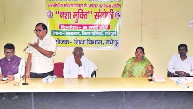 बता दें कि इस अवसर पर मधेपुरा जिला परिषद सभागार में जिले के डायनेमिक डीएम मो.सोहैल की टीम के डीपीओ (साक्षरता) सुरेन्द्र प्रसाद, उत्पाद अधीक्षक शैलेश चौधरी, प्रारंभिक काल से ही साक्षरता से जुड़े प्रो.सच्चिदानंद यादव, डॉ.भूपेन्द्र मधेपुरी, मुरलीधर, जानेश्वर शर्मा, सुमित कुमार सोनू सहित जीविका की दीदीयों एवं जिप के उपाध्यक्ष रघुनंदन दास आदि की उपस्थिति में जिला परिषद अध्यक्षा श्रीमती मंजू देवी की अध्यक्षता में जिप सभागार में ‘नशामुक्ति’ पर संगोष्ठी आयोजित की गयी |